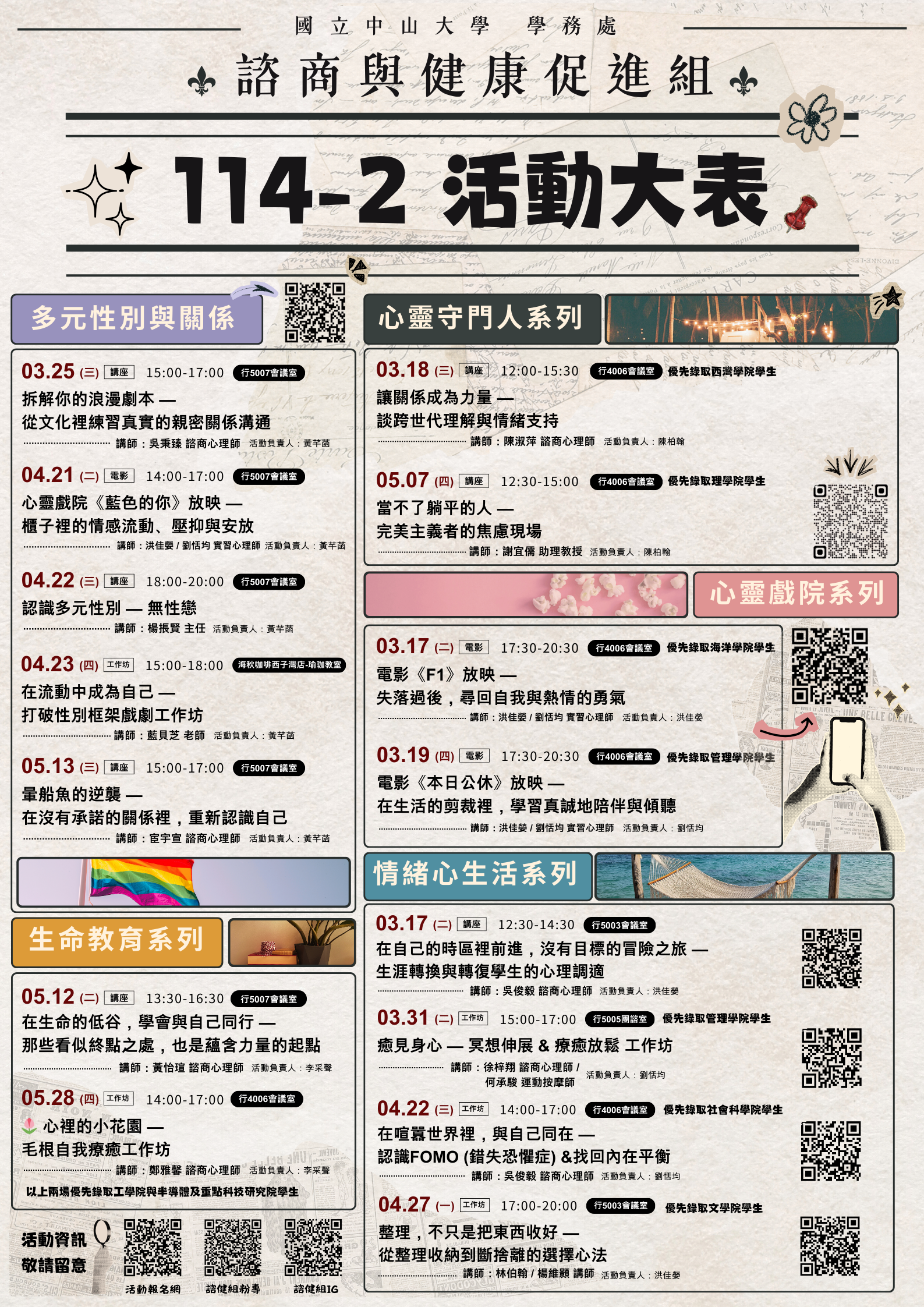 【公告】114-2學務處諮健組活動大表